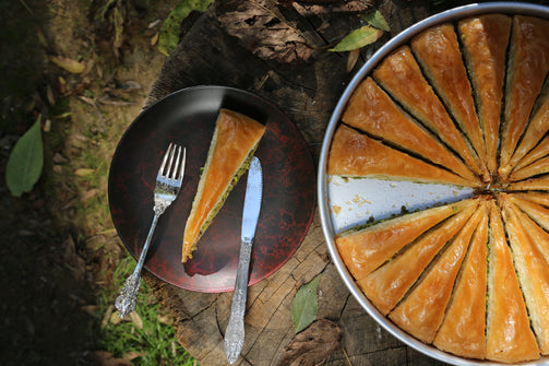 Baklava is a traditional sweet dessert pastry made by filling between the layers of dough with pistachios.